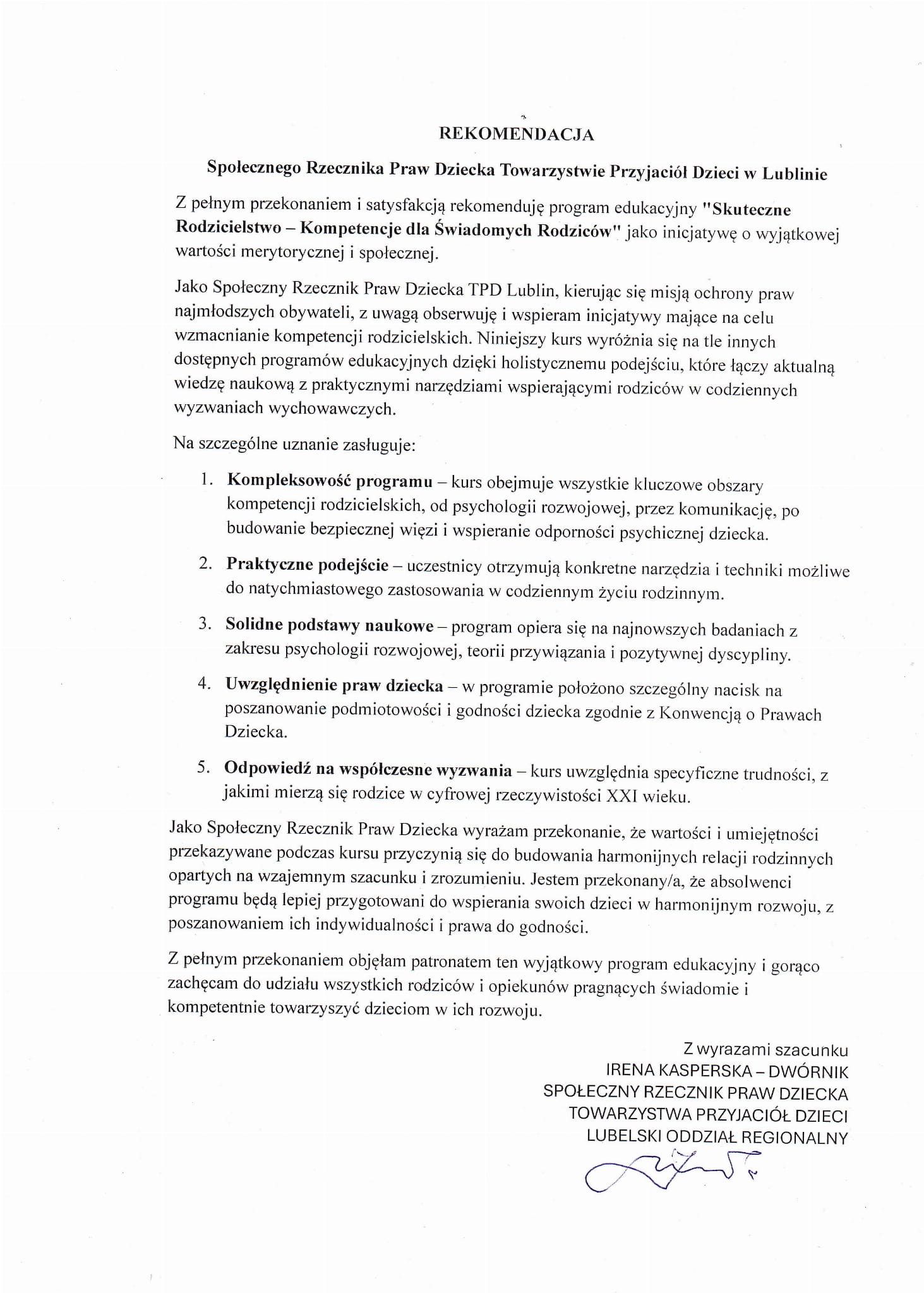 ✅ Oficjalny patronat i nadzór merytoryczny Społecznego Rzecznika Praw Dziecka TPD Lublin – gwarancja najwyższych standardów i aktualnej wiedzy o prawach dziecka