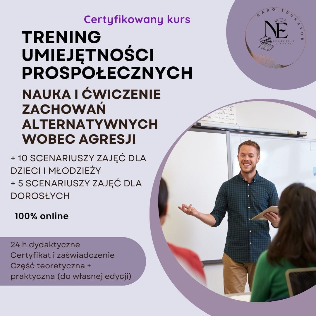 Rozwijanie kompetencji w zakresie treningu umiejętności prospołecznych jako alternatywy dla zachowań agresywnych, ze szczególnym uwzględnieniem pracy z dziećmi, młodzieżą i osobami z niepełnosprawnością intelektualną.