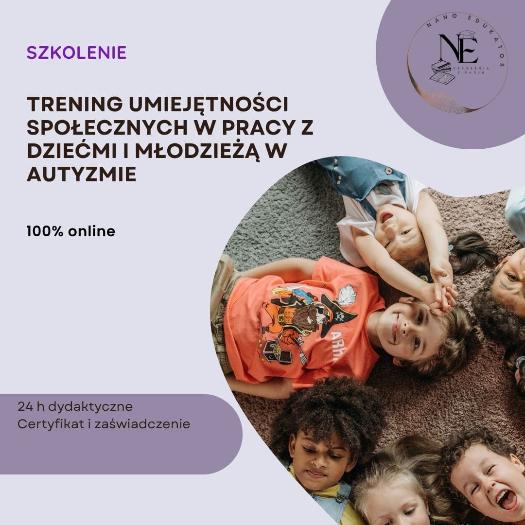 Certyfikowany doszkalający kurs: Trening umiejętności społecznych w pracy z dziećmi i młodzieżą w autyzmie - 24 godziny szkoleniowe